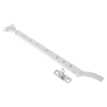 Met de GAMMA raamuitzetter wit 30 cm buitendraaiend zet je draairamen die naar buiten openen makkelijk vast. Zo klappert of valt je raam niet dicht door de wind. Je kunt het raam op 6 verschillende standen openen. Met de ventilatiestand heb je toch nog frisse lucht binnen als het te koud is om het raam vol open te zetten. De maximale stand is een opening van 30 cm. Het uitzetijzer zet je op de pin vast, zo maak je het ijzer windzeker. Het metaal heeft een witte gelakte afwerking, wat het tegen roest bestand maakt. Bovendien staat dat mooi bij witte raamkozijnen. De raamuitzetter is ook in andere kleuren verkrijgbaar. Ook het bevestigingsmateriaal kun je kopen bij GAMMA.