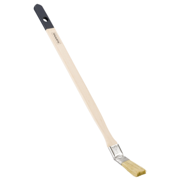 De GAMMA radiatorborstel voor watergedragen verf 25 mm is een smalle kwast met een lange gebogen steel waarmee je makkelijk achter radiatoren schildert. Dankzij de breedte van 25 millimeter is deze kwast ideaal voor nauwkeurige klussen op moeilijk bereikbare plekken zoals achter buizen of tussen panelen. De borstel heeft synthetisch natuurlijk haar dat geschikt is voor muur- en plafondverf op waterbasis. De houten steel ligt prettig in de hand en de verf wordt gelijkmatig verdeeld voor een strak resultaat.