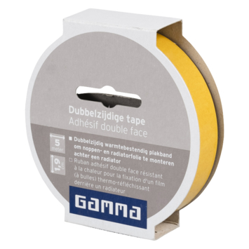 Met Gamma Radiatorfolieplakband 5 meter dubbelzijdig klevend bevestig je eenvoudig radiatorfolie achter je verwarmingen. Radiatorfolie breng je aan de achterkant van de verwarming aan, zodat er minder hitte verloren gaat. De tape is eenvoudig aan te brengen dankzij de dubbelzijdige plakrand. Radiatorfolieplakband is warmtebestendig. Op die manier biedt de radiatorfolie, bevestigd door middel van Gamma Radiatorfolieplakband, het beste resultaat.