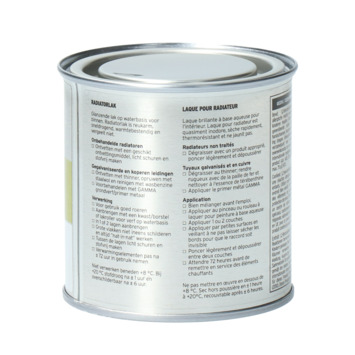 De GAMMA radiatorlak hoogglans 250ml gebroken wit is een glanzende, water verdunbare lak voor binnen. Het is speciaal geschikt voor de bescherming van radiatoren, centrale verwarmingsleidingen en warmwaterleidingen. Gamma radiatorlak is watergedragen en bestand tegen temperaturen tot ca. 80°C. De lak is geurarm en snel droog waardoor je de radiatorlak probleemloos binnenshuis kunt gebruiken.