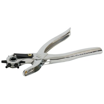 Met deze GAMMA-revolvertang met een diameter van 2mm tot en met 4,5mm ponst u gaten in onder andere leer, textiel en rubber met een diameter van 2mm, 2,5mm, 3mm, 3,5mm, 4mm en 4,5mm. De revolvertang is verchroomd en voorzien van een veer. Hierdoor opent de tang zich automatisch. Dit maakt de revolvertang comfortabel in gebruik. Op zoek naar een kwaliteitsvolle tang voor het ponsen van gaten? Dan is deze revolvertang geschikt, zowel voor thuisgebruik als op het werk.