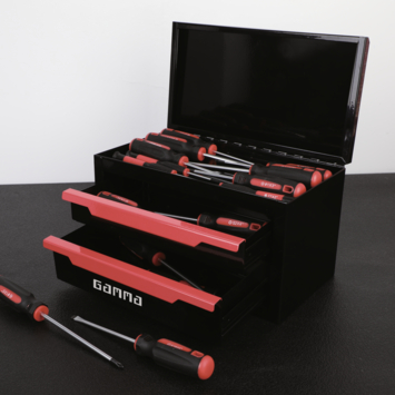 GAMMA robuuste compacte gereedschapskast met laden zwart rood