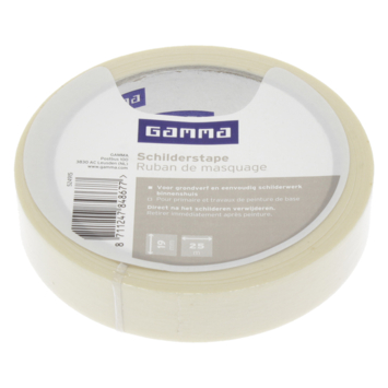De GAMMA schilderstape 19 mm x 25 m is een afplaktape geschikt voor effen ondergronden binnen. Deze tape gebruik je vooral bij grondverf en eenvoudig schilderwerk binnenshuis. De drager van de tape is speciaal ontworpen om strakke lijnen te creëren tijdens het schilderen. De tape is geschikt voor gebruik bij normale kamertemperaturen en is niet UV-bestendig. Je verwijdert de tape direct na het schilderen zodat er geen verfresten achterblijven. Met deze tape werk je nauwkeurig en voorkom je dat verf op ongewenste plekken komt.