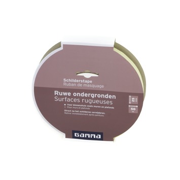 De GAMMA schilderstape ruwe ondergronden is een schilderstape van het GAMMA eigen merk. De schilderstape is geschikt voor gebruik op ruwe ondergronden, zoals muren en plafonds. Verwijder de tape voordat de verf droog is door deze schuin weg te trekken. Zo creëert u het beste eindresultaat. Afmeting: 25mm bij 50m.