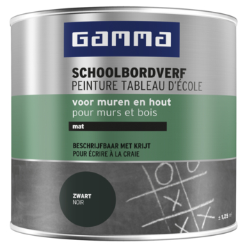 GAMMA schoolbordverf is een sneldrogende, matzwarte schoolbordverf op waterbasis. Geschik voor muren en houten oppervlakken binnenshuis, zoals deuren en kasten. Beschrijfbaar met krijt, onbeperkt afwasbaar en geurarm. In minimaal 2 lagen aanbrengen, overschilderbaar na ± 6 uur. Met krijt te beschrijven na minimaal 48 uur. Liever een kleurtje? GAMMA schoolbordverf is te mengen in vrijwel elke kleur op onze verfmengmachine.
