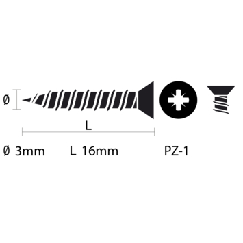 | Type(nummer) | Universeel 3.0x16mm platkop RVS |
