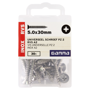 GAMMA schroef universeel platkop RVS 5.0x30 mm 30 stuks
