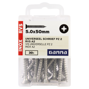 GAMMA schroef universeel platkop RVS 5.0x50 mm 30 stuks