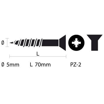 Deze platkopschroeven van GAMMA zijn gemaakt van roestvrij staal en universeel te gebruiken. Ze hebben een platverzonken kop van het type PZ 2 en een pozi-aandrijving. U kunt deze standaardschroeven dus gebruiken met een kruiskopschroevendraaier. De schroef heeft een deeldraad en is geschikt om twee lagen hout strak tegen elkaar te schroeven. De deeldraadschroef is voorzien van een waslaag voor een betere verwerking. De schroeven hebben een lengte van 70mm en een diameter van 5mm. Ze zijn zowel binnen als buiten te gebruiken in spaanplaat en hout. Eén verpakking bevat 70 stuks.