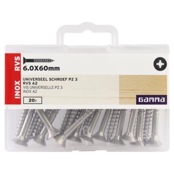 GAMMA schroef universeel platkop RVS 6.0x60 mm 20 stuks