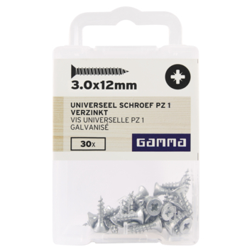 GAMMA schroef universeel platkop verzinkt 3.0x12 mm 30 stuks