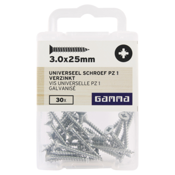 GAMMA schroef universeel platkop verzinkt 3.0x25 mm 30 stuks