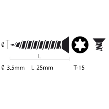 Deze platkopschroeven van GAMMA zijn gemaakt van verzinkt staal en universeel te gebruiken. De schroef is van het type T15, met een platverzonken kop en een torx-aandrijving. De schroef heeft draad over de hele lengte, en geeft daarmee veel grip in de materie. De voldraadschroef is voorzien van een waslaag voor een betere verwerking. De verpakking bevat schroeven met een lengte van 25mm en een diameter van 3,5mm. De schroeven zijn zowel binnen als buiten te gebruiken in spaanplaat en hout. Eén verpakking bevat 200 stuks.