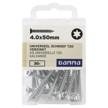 GAMMA schroef universeel platkop verzinkt 4.0x50 mm 30 stuks