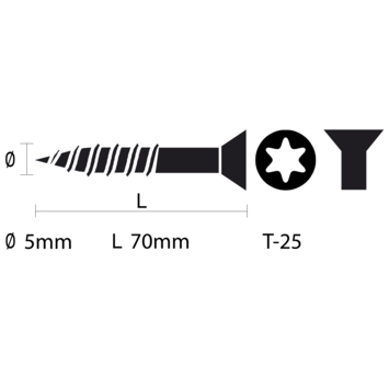 Handige T25 kop voor betere grip in de schroefbit. Prima schroef voor algemeen gebruik in hout.