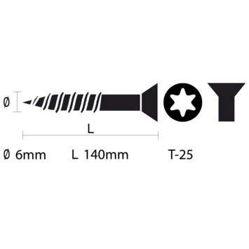| Type(nummer) | Universeel 6.0x140mm platkop Verzinkt |