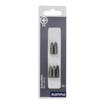 De Gamma schroefbit PZ2 x 25mm is een accessoire die op een boormachine geplaatst kan worden om vervolgens de functie van een schroevendraaier over te nemen. Voordelen hierbij zijn; een grotere kracht en draaisnelheid die geleverd kan worden tegen geringe inspanning. De verpakking bevat 5 bitjes met een Pozidrive aandrijving.