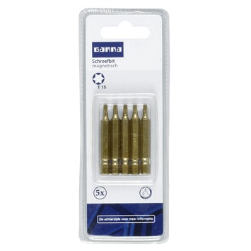 Welke schroefklus u ook voor ogen heeft, met het GAMMA schroefbit T15 50mm 5 stuks klaart u deze binnen een mum van tijd. De schroefbitset bestaat uit 5 schroefbits met een afmeting van 50mm en een T15-schroefkop. De magnetische schroefbits zijn vervaardigd uit chroom-vanadium staal en voorzien van een titanium coating voor extra robuustheid. Van de bevestiging van een plafond tot en met het in elkaar zetten van een meubelstuk, de magnetische schroefbits zijn geschikt voor tal van schroefklussen. Kortom, met GAMMA schroefbit T15 50mm 5 stuks heeft u altijd een kwalitatief hoogstaand schroefbit voorhanden.