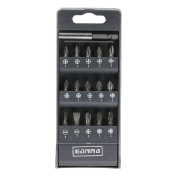 De Gamma schroefbitset 25mm inclusief houder bevat diverse accessoires die op een boormachine geplaatst kunnen worden om vervolgens de functie van een schroevendraaier over te nemen. Voordelen hierbij zijn; een grotere kracht en draaisnelheid die geleverd kan worden tegen geringe inspanning. De set bestaat uit een veertiental schroefbits variërend in aandrijving en maat, inclusief 1x de houder.