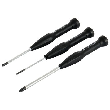 De 3-delige GAMMA-set met precisieschroevendraaiers PH00, PH0 en PH1 bestaat uit 3 schroevendraaiers, gemaakt van chroom-vanadiumstaal. De 3 schroevendraaiers zijn geschikt voor Phillips-kruiskopschroeven met maat PH00, PH0 en PH1. Dit zijn schroeven met afmetingen van 3mm en kleiner. De 3-delige set met Phillips-kruiskopschroevendraaiers is ideaal voor precisiewerk, zoals het schroeven aan gevoelige elektronica en computers. De PH-schroevendraaiers uit deze set zijn namelijk micro-antistatisch. Bovendien zijn de kruiskopschroevendraaiers voorzien van een draaiende kop die het schroeven makkelijker maakt. Bekijk GAMMA’s assortiment wanneer u op zoek bent naar andere schroevendraaiersets.
