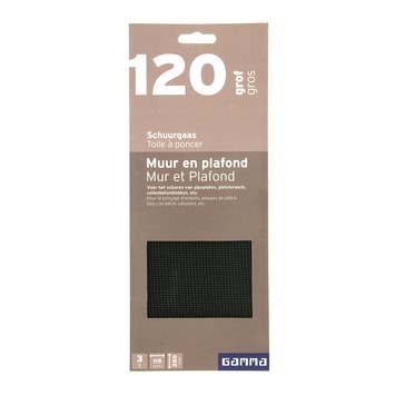 Het GAMMA schuurgaas grof K120 is schuurgaas van GAMMA eigen merk. Het schuurgaas is geschikt voor het grovere schuurwerk en kan zowel nat als droog worden gebruikt voor onder andere gipsplaten, pleisterwerk en cellenbetonblokken. Bovendien is het schuurgaas herbruikbaar. Spoel het schuurgaas na en knijp het goed uit om vastzittend schuurstof uit te spoelen. Hierdoor gaat het schuurgaas gemiddeld 3x langer mee dan normaal schuurpapier.