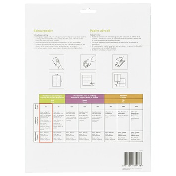 Je kunt de vellen zowel met de hand als met een schuurmachine gebruiken. De grove structuur maakt dit papier geschikt voor bijvoorbeeld het verwijderen van oude verflagen of het opruwen van gelakt hout voordat je opnieuw gaat schilderen. Verkrijgbaar in meerdere korrelgroottes voor verschillende schuurstappen.