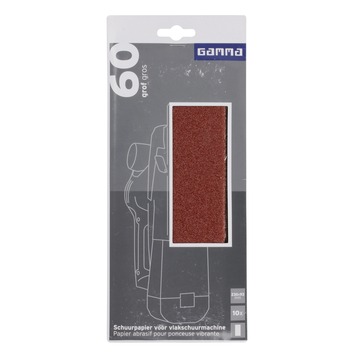 Het Gamma schuurpapier 93x230mm is uitermate geschikt voor het schuren van oppervlakten. Dit schuurpapier heeft korrelgrootte/ grit K60 (grof). Het schuurpapier is geschikt voor een vlakschuurmachine. De verpakking bevat 10 vellen.