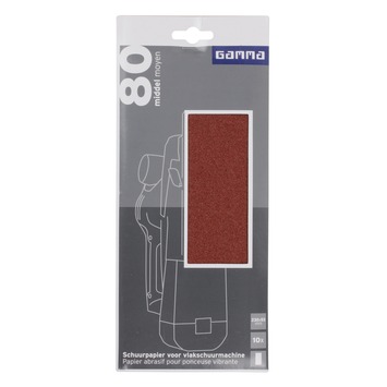 Het Gamma schuurpapier 93x230mm is uitermate geschikt voor het schuren van oppervlakten. Dit schuurpapier heeft korrelgrootte/ grit K80 (middel). Het schuurpapier is geschikt voor een vlakschuurmachine. De verpakking bevat 10 vellen.