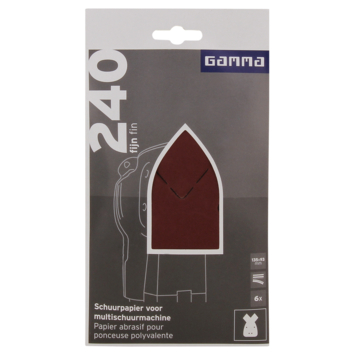 Het Gamma schuurpapier 135x95mm is uitermate geschikt voor het schuren van oppervlakten. Dit schuurpapier heeft korrelgrootte/ grit K240 (fijn). Het schuurpapier bevat klittenband en is geschikt voor een multischuurmachine. De verpakking bevat 6 vellen.
