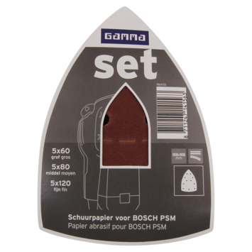 De Gamma schuurpapierset 150x105mm geperforeerd is uitermate geschikt voor het schuren van oppervlakten. De set bestaat uit een tiental vellen met diverse korrelgroottes; 4x K60(grof), 3x K80 (middel), 2x K120 (fijn). Het schuurpapier is geschikt voor de Bosch PSM schuurmachine.