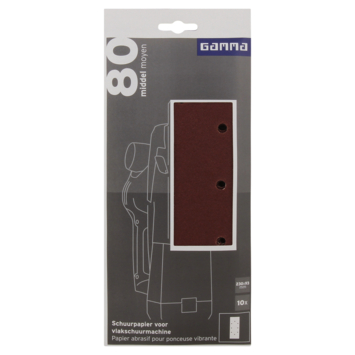 Het Gamma schuurpapier 230x93mm is uitermate geschikt voor het schuren van oppervlakten. Dit schuurpapier heeft korrelgrootte/ grit K80 (middel). Het schuurpapier is geschikt voor een vlakschuurmachine. De verpakking bevat 10 vellen.