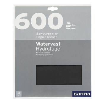 Het GAMMA schuurpapier watervast fijn k600 is schuurpapier van het GAMMA eigen merk. Dankzij de fijne korrel is het schuurpapier geschikt voor het vlakschuren van oneffenheden. Daarnaast kunt u het schuurpapier gebruiken om het lakwerk tussen de verflagen in op te schuren. Wanneer u meerdere verflagen aanbrengt is het raadzaam om na iedere laag het lakwerk weer licht op te schuren. Zo hecht de lak het beste en creëert u strak schilderwek waar u langdurig van kunt genieten. Het schuurpapier is geschikt voor nat gebruik, zodat er stofvrij geschuurd kan worden. Verpakt per 3 stuks.