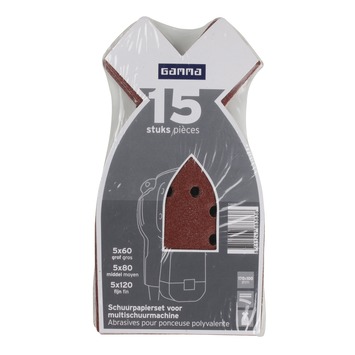 De Gamma schuurpapierenset 170x100mm is uitermate geschikt voor het schuren van oppervlakken. De set bestaat uit 15 vellen variërend in korrelgrootte/ grit; 5x K60 (grof), 5x K80 (middel) en 5x K120 (fijn). Het schuurpapier bevat klittenband en is geschikt voor een multischuurmachine.