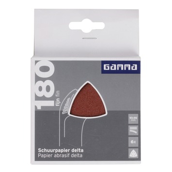 Het Gamma schuurpapier 93x90mm is uitermate geschikt voor het schuren van oppervlakten. Dit schuurpapier heeft korrelgrootte/ grit K180 (fijn). Het schuurpapier bevat klittenband en is geschikt voor een deltaschuurmachine. De verpakking bevat 6 vellen.