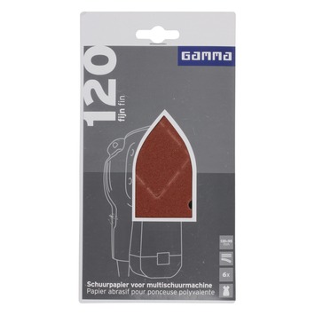 Het Gamma schuurpapier 135x95mm is uitermate geschikt voor het schuren van oppervlakten. Dit schuurpapier heeft korrelgrootte/ grit K120 (fijn). Het schuurpapier bevat klittenband en is geschikt voor een multischuurmachine. De verpakking bevat 6 vellen.