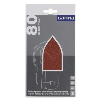 Het Gamma schuurpapier 135x95mm is uitermate geschikt voor het schuren van oppervlakten. Dit schuurpapier heeft korrelgrootte/ grit K80 (middel). Het schuurpapier bevat klittenband en is geschikt voor een multischuurmachine. De verpakking bevat 6 vellen.