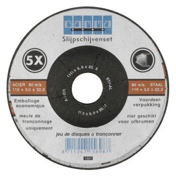 Het slijpen van stalen voorwerpen wordt nog makkelijker met de GAMMA slijpschijf staal 5 stuks. Deze slijpschijf wordt geleverd in een verpakking van 5 stuks. De slijpschijven voor staal hebben een afmeting van 115 bij 3 bij 22,2mm. U bevestigt de slijpschijf eenvoudig zelf. De slijpschijf staat garant voor een uitstekend slijpresultaat. De slijpschijf voor staal is geschikt voor tal van bewerkingen, zoals het gemakkelijk en comfortabel slijpen van stalen buizen of plaatjes. Kortom, met de GAMMA slijpschijf steen 5 stuks bewerkt u staal in een mum van tijd.