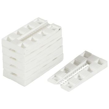 De GAMMA stelwig van 8mm is geschikt om te gebruiken bij het uitrichten en opvullen van constructies. Zo stelt u met behulp van de wig constructies precies af voordat u deze definitief bevestigt. Met de stelwig van 8mm stelt u ook meubels, machines en andere voorwerpen. Bijvoorbeeld wanneer ze niet helemaal recht staan. De stelwig van GAMMA met 8mm dikte is ook verkrijgbaar als stelwig met 15mm dikte. Daarnaast biedt het assortiment vulplaatjes en een stelplaatset met stelplaatjes van 2mm, 3mm, 4mm en 5mm.