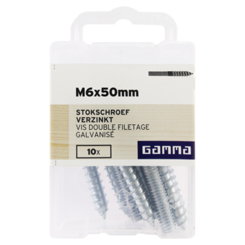 Deze stokschroef van GAMMA is gemaakt van verzinkt metaal en dus redelijk bestand tegen vocht. De stokschroef heeft de metrische afmeting M4 en is 30mm lang. Typerend voor een stokschroef of eindschroef is dat hij een combinatie vormt van houtschroef en bout ineen. Stokschroeven worden bijvoorbeeld veel gebruikt om wasbakken, fonteintjes en leuningdragers aan de wand te bevestigen. U draait de stokschroef in de muur en schroeft vervolgens het op te hangen voorwerp op de stokschroef. Eén verpakking bevat 10 stuks stokschroeven.