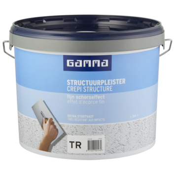 GAMMA Structuurpleister is een matte structuurpleister met een fijn schorseffect en een 1,5 mm korrel. Geschikt als decoratieve, duurzame wand- afwerking binnenshuis. Extra stootvast, ademend en goed reinigbaar. Eenvoudig aan te brengen en overschilderbaar met muurverf. Is je muur nog onbehandeld? Gebruik dan voorstrijk structuur en sierpleister voor een optimale hechting. Een emmer van 10 liter is ongeveer goed voor 24 m².
