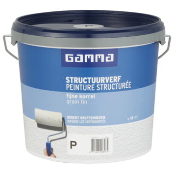 GAMMA Sctructuurverf is een matte muurverf met fijne zandkorrel voor het creëren van structuur. Geschikt voor het duurzaam en decoratief schilderen van muren en plafonds binnenshuis. De zeer goed dekkende verf bedekt kleine oneffenheden, is stootvast en ademend. Eenvoudig aan te brengen en overschilderbaar. Is je muur nog onbehandeld? Gebruik dan voorstrijk structuur en sierpleister voor een optimale hechting. Laat je structuurverf direct in de gewenste kleur mengen voor een optimaal resultaat!