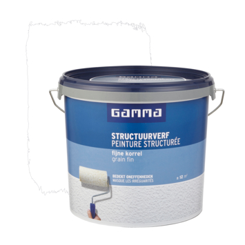GAMMA Sctructuurverf is een matte muurverf met fijne zandkorrel voor het creëren van structuur. Geschikt voor het duurzaam en decoratief schilderen van muren en plafonds binnenshuis. De zeer goed dekkende verf bedekt kleine oneffenheden, is stootvast en ademend. Eenvoudig aan te brengen en overschilderbaar. Structuurverf is ook verkrijgbaar op de verfmengmachine. Is je muur nog onbehandeld? Gebruik dan voorstrijk structuur en sierpleister voor een optimale hechting. Deze emmer van 5 liter is voldoende voor het afwerken van circa 12 m².