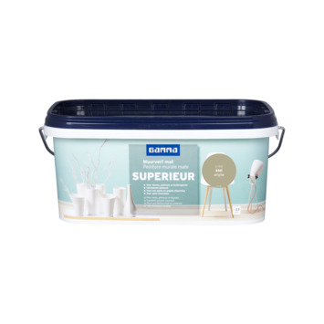 GAMMA Superieur klei is een kwalitatief hoogwaardige, matte en uitstekend dekkende en latexverf. De Superieur verf van GAMMA zorgt voor een egale en gladde afwerking, die nog versterkt wordt dankzij het gebruik van kwalitatief verfgereedschap. De verf is universeel toepasbaar voor het schilderen van muren en plafonds in woonkamer, slaapkamer, hal enz. maar ook garages en kelders. Ook buiten te gebruiken voor het schilderen van muren en gevels. Met deze verf haal je een weersbestendige, reuk- en spatarme verf in huis. Inhoudsmaat 2,5 liter
