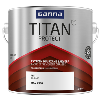 De GAMMA Titan Protect buitenlak biedt de beste bescherming voor je huis. Deze zijdeglans verf, op basis van siliconen alkydhars, maakt je kozijnen, deuren, gevelbetimmering en dakranden bestand tegen de steeds extremere weersinvloeden, zoals felle zon, keiharde hagel, stromende regen en stevige wind. De lak is te gebruiken als mooie afwerking van nieuw onbehandelde delen, maar ook op bestaand schilderwerk.