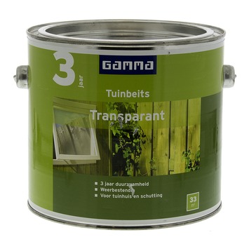 GAMMA tuinbeits transparant whitewash 2,5 liter is ideaal voor het langdurig beschermen van bijvoorbeeld uw tuinhuis, schutting en pergola, ook als deze geïmpregneerd zijn. Deze glanzende, transparante beits is een oplosmiddel houdend product en is beschikbaar in diverse dekkende en transparante kleuren. Het product is weersbestendig, waterafstotend, vochtregulerend en dringt diep door in het hout. Het rendement van één blik van 2,5 liter is ongeveer 30 m2. Op onbehandeld hout is het aan te bevelen om 3 lagen aan te brengen, op hout in goede staat volstaan 2 lagen. Gebruik van grondverf is niet nodig.
