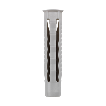 De GAMMA Universeelplug HDPE Ø 10mm is voor meerdere materialen te gebruiken De plug is zowel geschikt voor beton, massieve als geperforeerde steen, en ook voor holle wanden. De kop van de plug wordt namelijk door de schroef naar achteren getrokken en vormt in holle bouwmaterialen een soort knoop. Een handige plug dus om op voorraad te hebben, zodat je altijd een geschikte plug in huis hebt. De plug is 50mm lang, voor het beste resultaat adviseren wij een minimale boordiepte te hanteren van 60mm . Een verpakking bevat 10 pluggen. Deze plug is geschikt voor schroeven tussen 6 en 8mm met een minimale lengte van 55mm