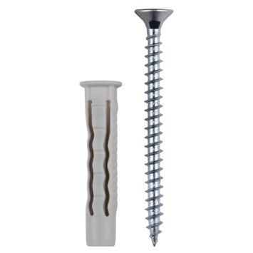 De GAMMA Universeelplug HDPE Ø 8mm met schroef is voor meerdere materialen te gebruiken De plug is zowel geschikt voor beton, massieve als geperforeerde steen, en ook voor holle wanden. De kop van de plug wordt namelijk door de schroef naar achteren getrokken en vormt in holle bouwmaterialen een soort knoop. Een handige plug dus om op voorraad te hebben, zodat je altijd een geschikte plug in huis hebt. De plug is 40mm lang, voor het beste resultaat adviseren wij een minimale boordiepte te hanteren van 45mm . Een verpakking bevat 25 pluggen met 0 45mm