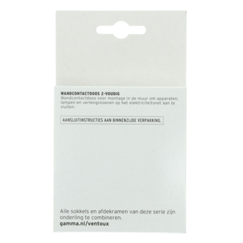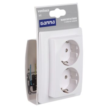 De GAMMA Ventoux Dubbel Geaard Stopcontact Wit monteer je eenvoudig zelf in de muur met behulp van de gebruiksvriendelijke installatiehandleiding en het aansluitschema. De ?aarde? zorgt ervoor dat, in geval van kapotte- of losgeschoten bedrading in een apparaat (bv. wasmachine of computer), de metalen delen niet onder stroom komen te staan, de stroom wordt dan via een extra aardedraad in de aarde geleid. Op deze witte contactdoos kun je twee apparaten of lampen aansluiten. De Ventoux-serie bestaat uit een groot assortiment stijlvol en strak schakelmateriaal in diverse kleuren en van uitstekende kwaliteit. Je kunt de afdekramen zowel horizontaal als verticaal installeren.