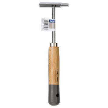 - Huisvorm met gehard stalen blad en gelakt houten steel
