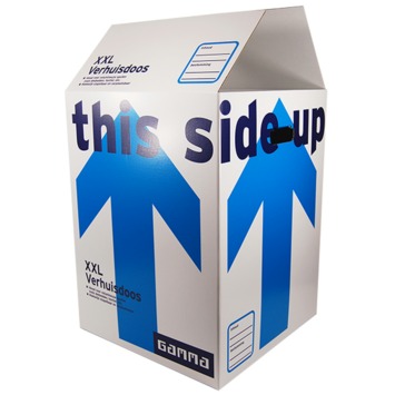 Op zoek naar een zeer grote verhuisdoos? Dan moet je de GAMMA verhuisdoos XXL karton wit 47x47x62 cm hebben. Het extra grote formaat van 47x47x62cm en een inhoud van maar liefst 137 liter is ideaal voor het vervoeren van grote of volumineuze spullen, bijvoorbeeld wanneer je gaat verhuizen. De verhuisdoos is eenvoudig op te zetten en gemaakt van stevig dubbelgolf kraftkarton en dus milieuvriendelijk vervaardigd. Je kunt meerdere spullen in de verhuisdoos doen, zonder dat je bang hoeft te zijn dat de verhuisdoos uit elkaar valt of scheurt. De 3 laags verstevigde comfort handgrepen zorgen voor een probleemloos gebruik. De verhuisdoos XXL is geschikt voor hergebruik, maar ook handig als opbergdoos in de garage of op zolder. Dit is de ideale verhuisdoos voor bijvoorbeeld je dekbedden, kussens, textiel, speelgoed, lampen, planten en andere grote spullen.